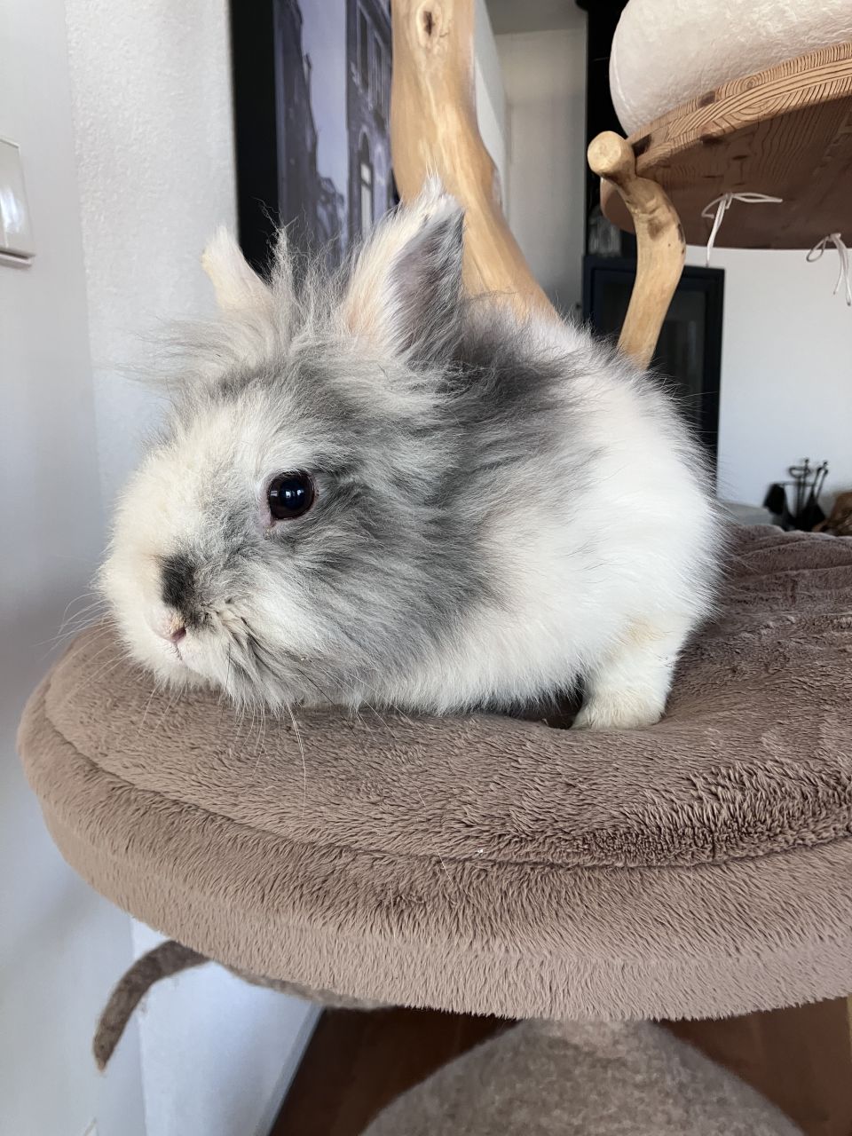 Coton est un lapin nain mâle castré, poil mi-long, taille moyenne. Il est né en octobre 2023 environ (2,5 ans).